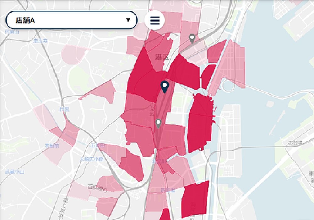 自店舗に実際に来訪している数が多い(or少ない)地域がわかるので対象の店舗をそれぞれ分析して商圏が実際に重なっていないかどうかを簡単に判別することができます。