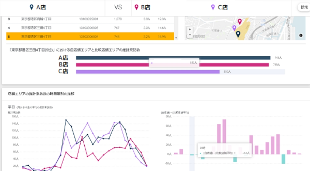 FCや直営との顧客の食い合いや出店戦略にも有効活用することができます。